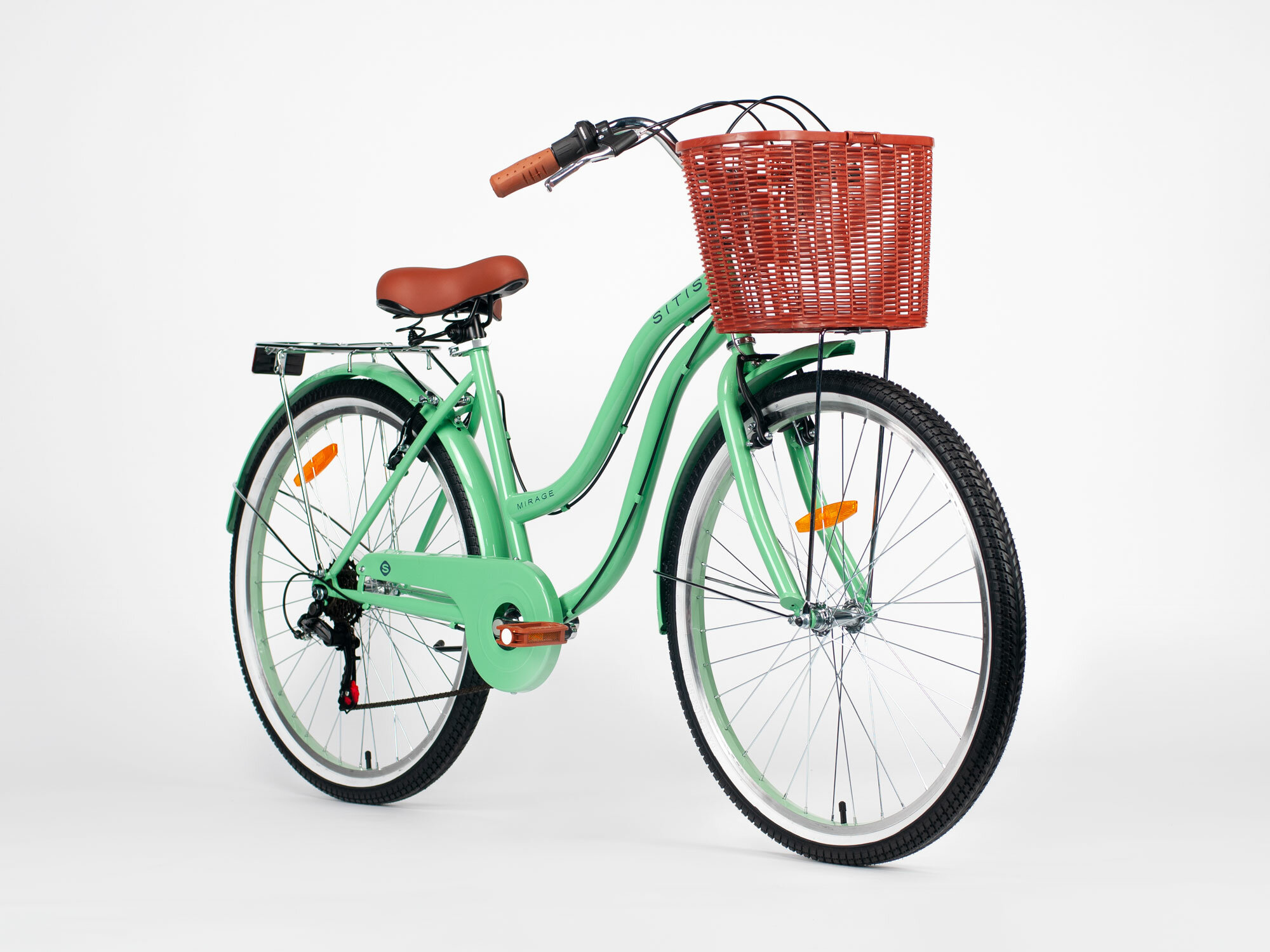 Велосипед городской SITIS MIRAGE SMRG26 26" (2024), ригид, взрослый, женский, стальная рама, оборудование Shimano Tourney, 7 скоростей, ободные тормоза, цвет Light-Green-Black, зеленый/черный цвет, размер рамы 17", для роста 170-180 см 26 874 ₽