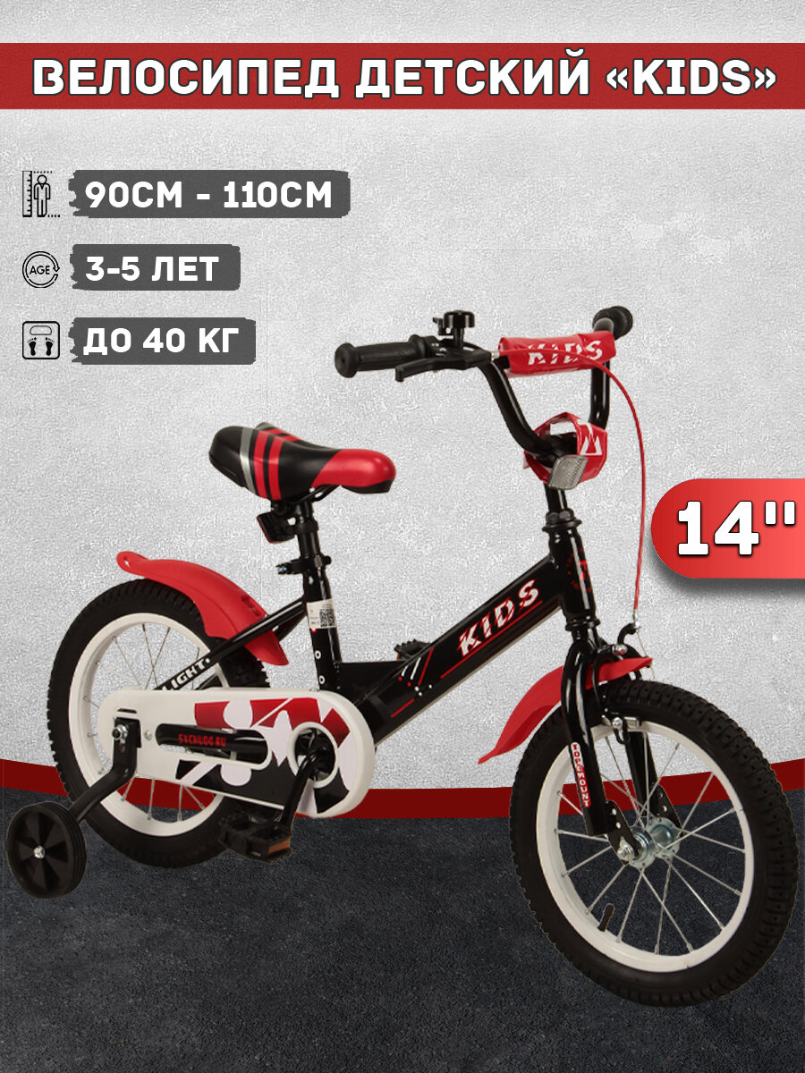 Велосипед детский Kids 14", рост 90-110 см, 3-5 лет, черный информация: