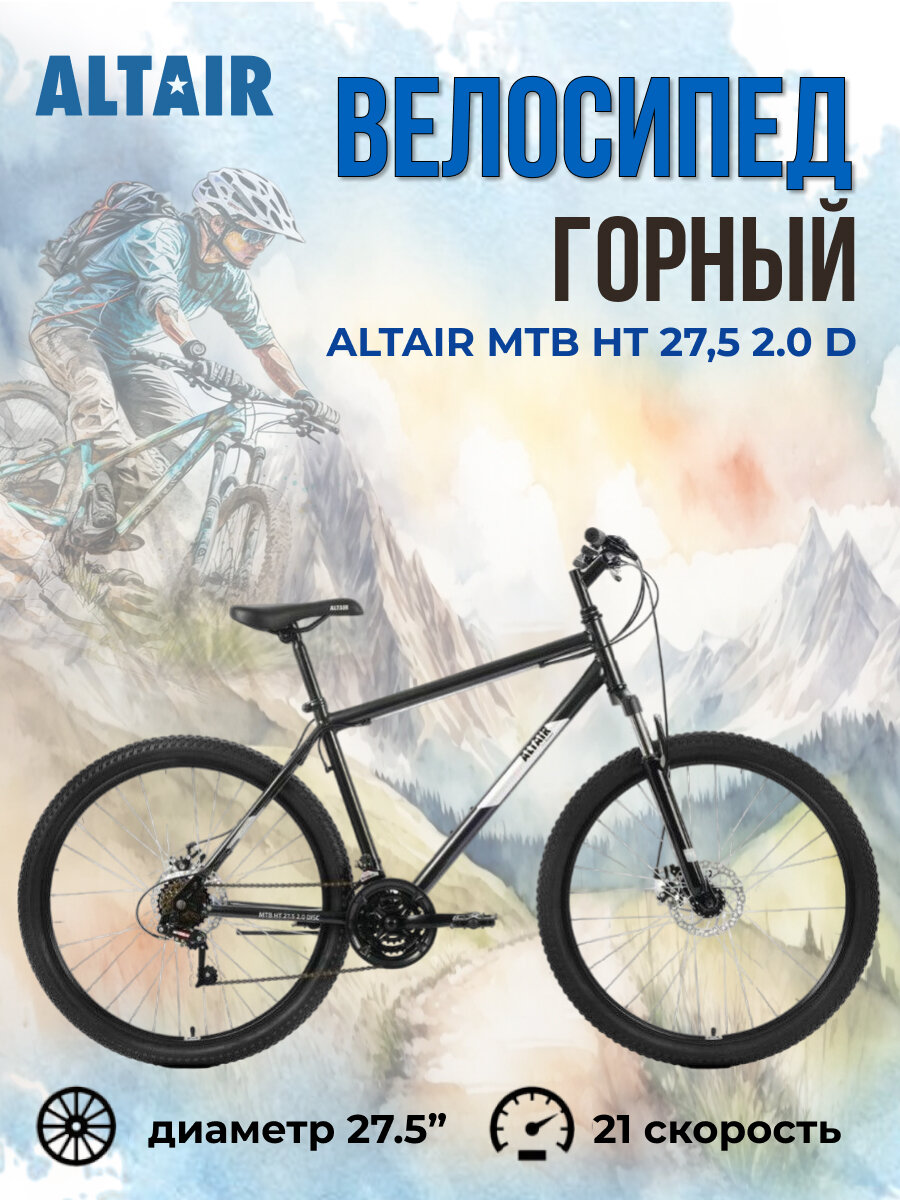Велосипед ALTAIR MTB HT 27,5 2.0 D (27,5" 21 ск. рост. 17") 2022, черный/серебристый, RBK22AL27138