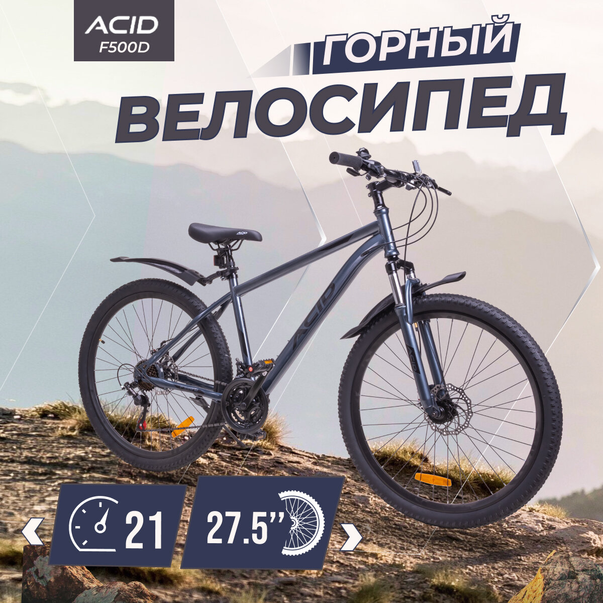 Отзывы на Велосипед горный 27,5"ACID F 500 D 21 скорость 2023 года рама 17" Gray/Black