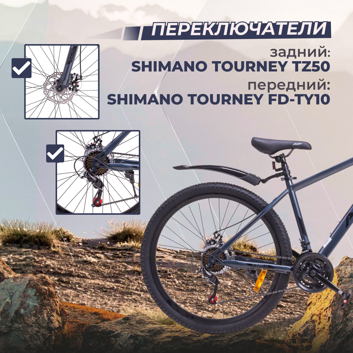| Наименование заднего переключателя | Shimano Tourney TZ50 |