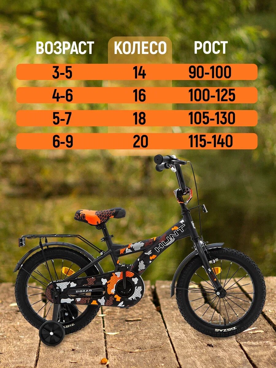 Отзывы на Велосипед детский 16" ZIGZAG HUNT Хаки черный/оранжевый для мальчиков и девочек от 4 до 6 лет на рост 100-125см