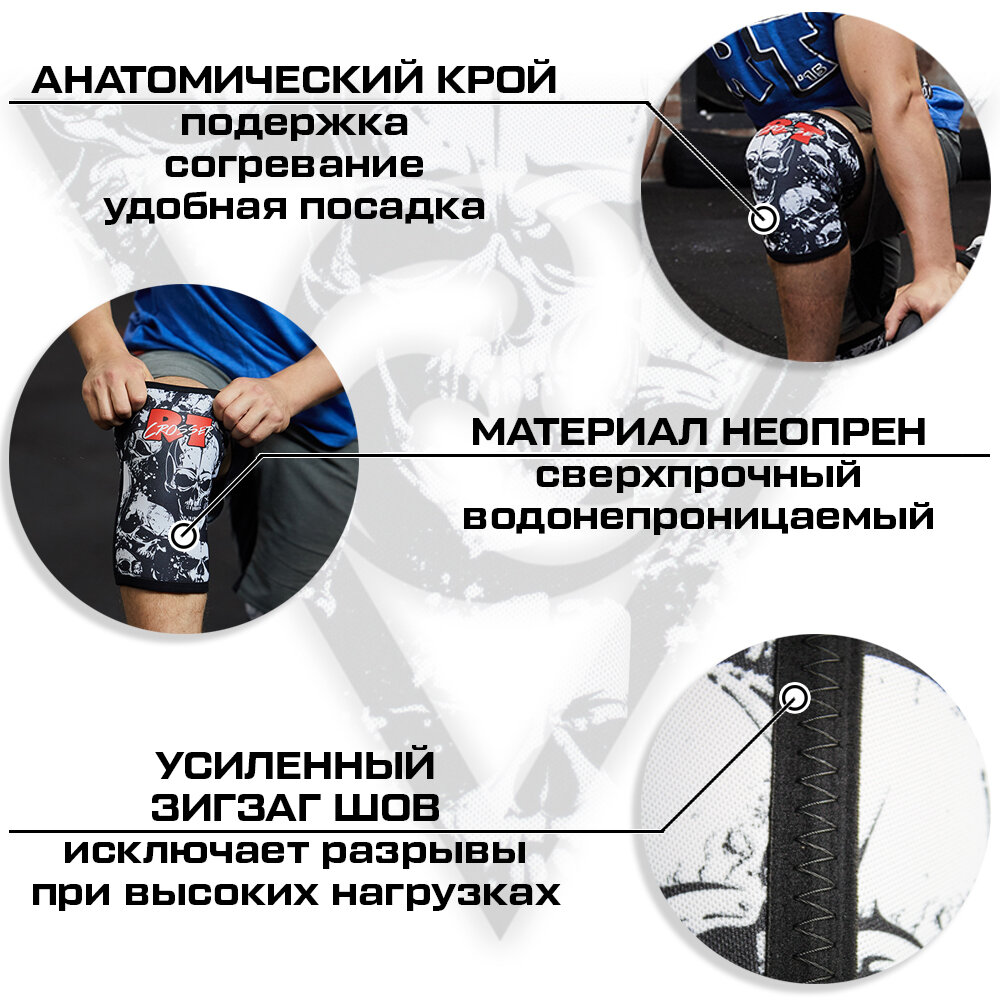 Отзывы на Наколенники спортивные универсальные для кроссфита и тяжелой атлетики Русская Турбина Crosser Skull XS