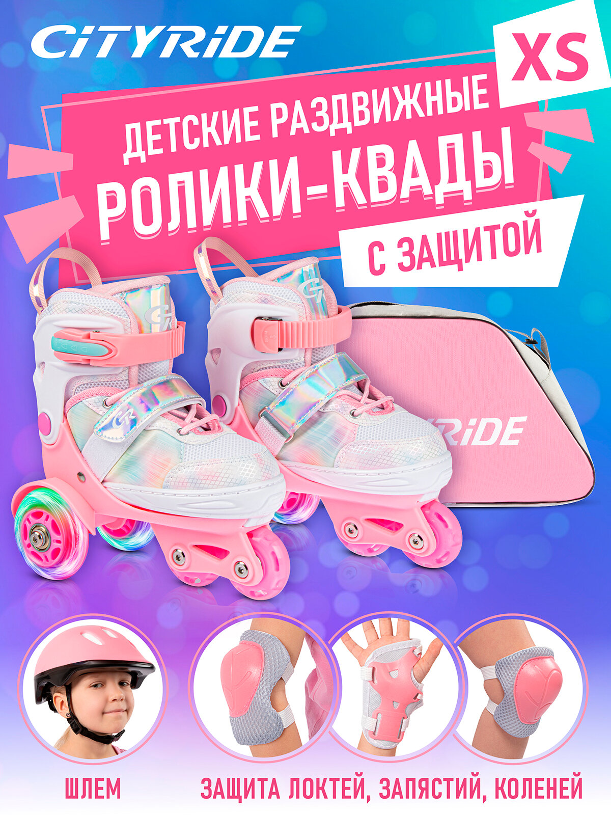 Набор CITYRIDE роликовые коньки-квады, шлем, защита, пластиковый мысок, колёса PU 80/40 мм, JB8800102/XS 6 356 ₽