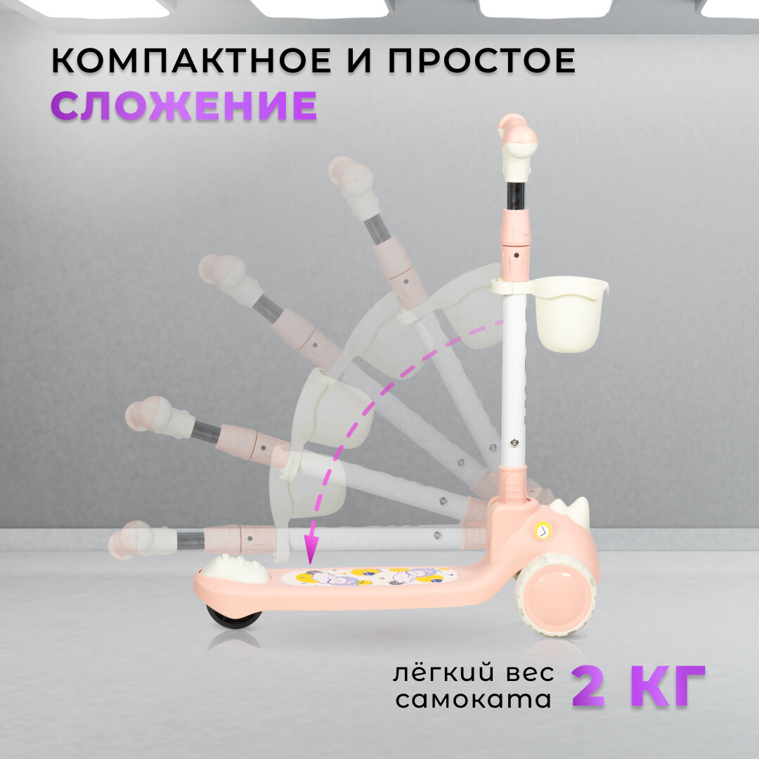Самокат трехколесный детский Costa CST-09, розовый информация: