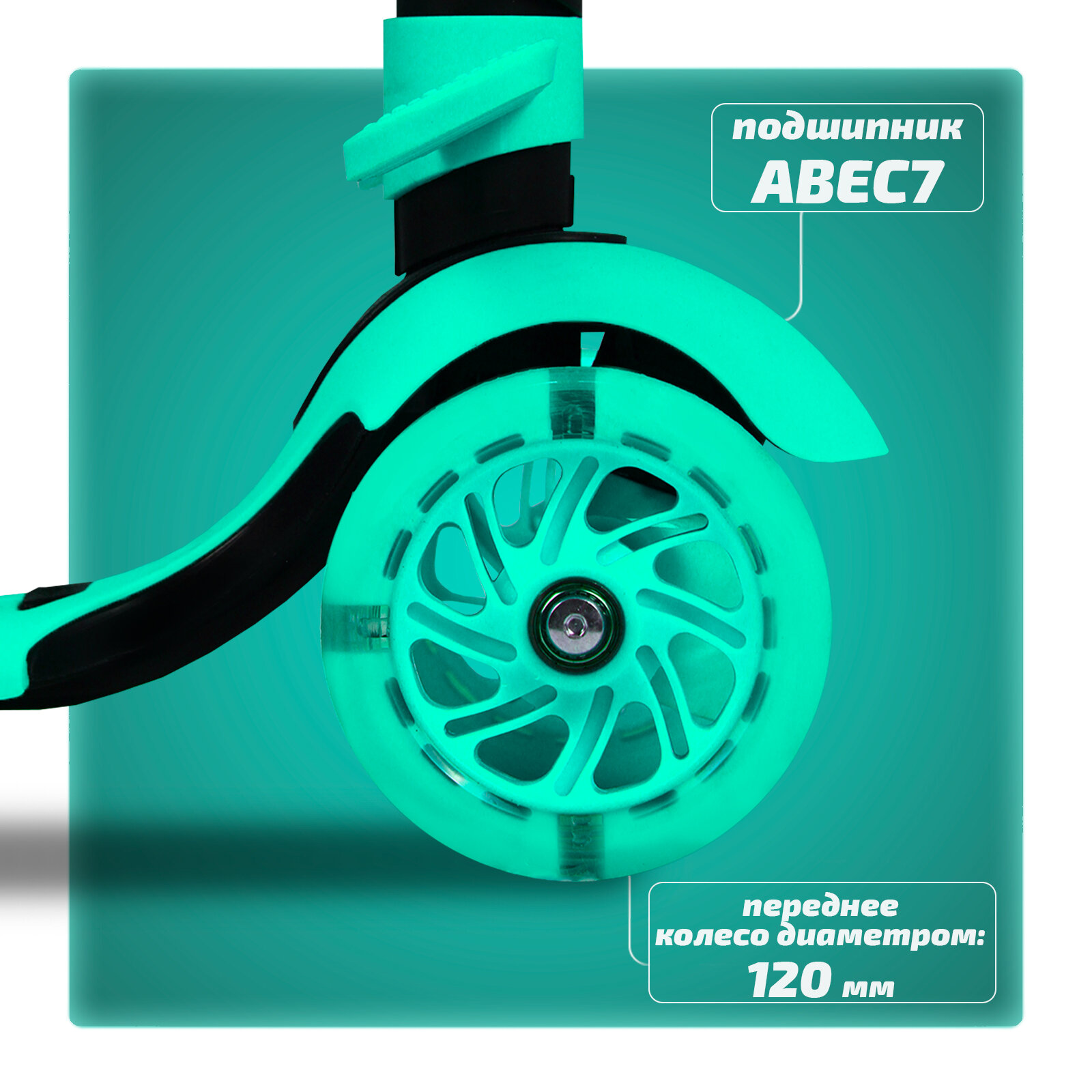Самокат детский трехколесный 3 в 1 до 5 лет бирюзовый со светящимися колесами информация: