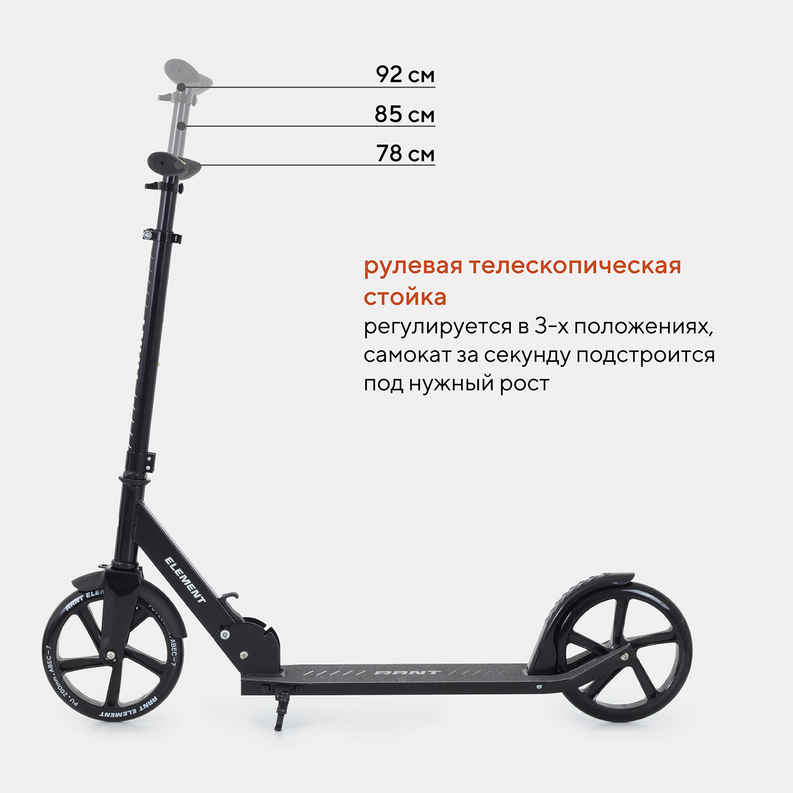 Самокат детский двухколесный складной Rant Element черный информация: