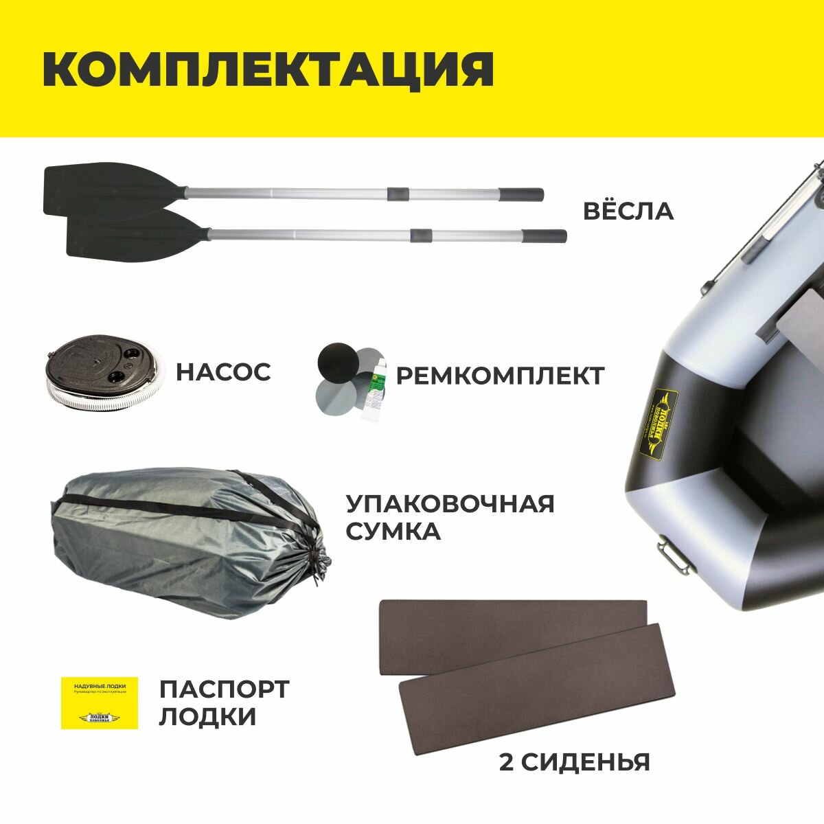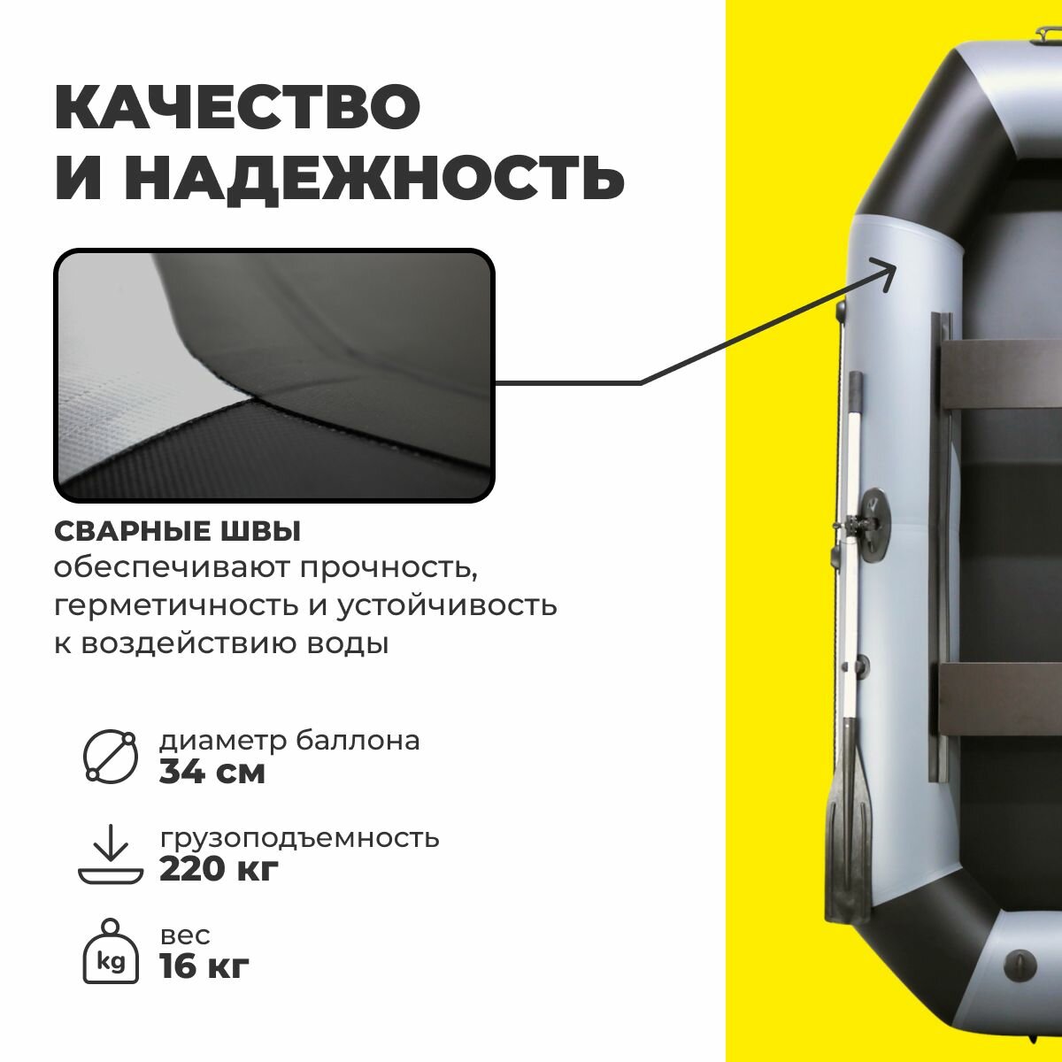 Лодка надувная для рыбалки ПВХ Лодки Поволжья S-280, гребная двухместная, крепления для транца под мотор, серо-черная информация: