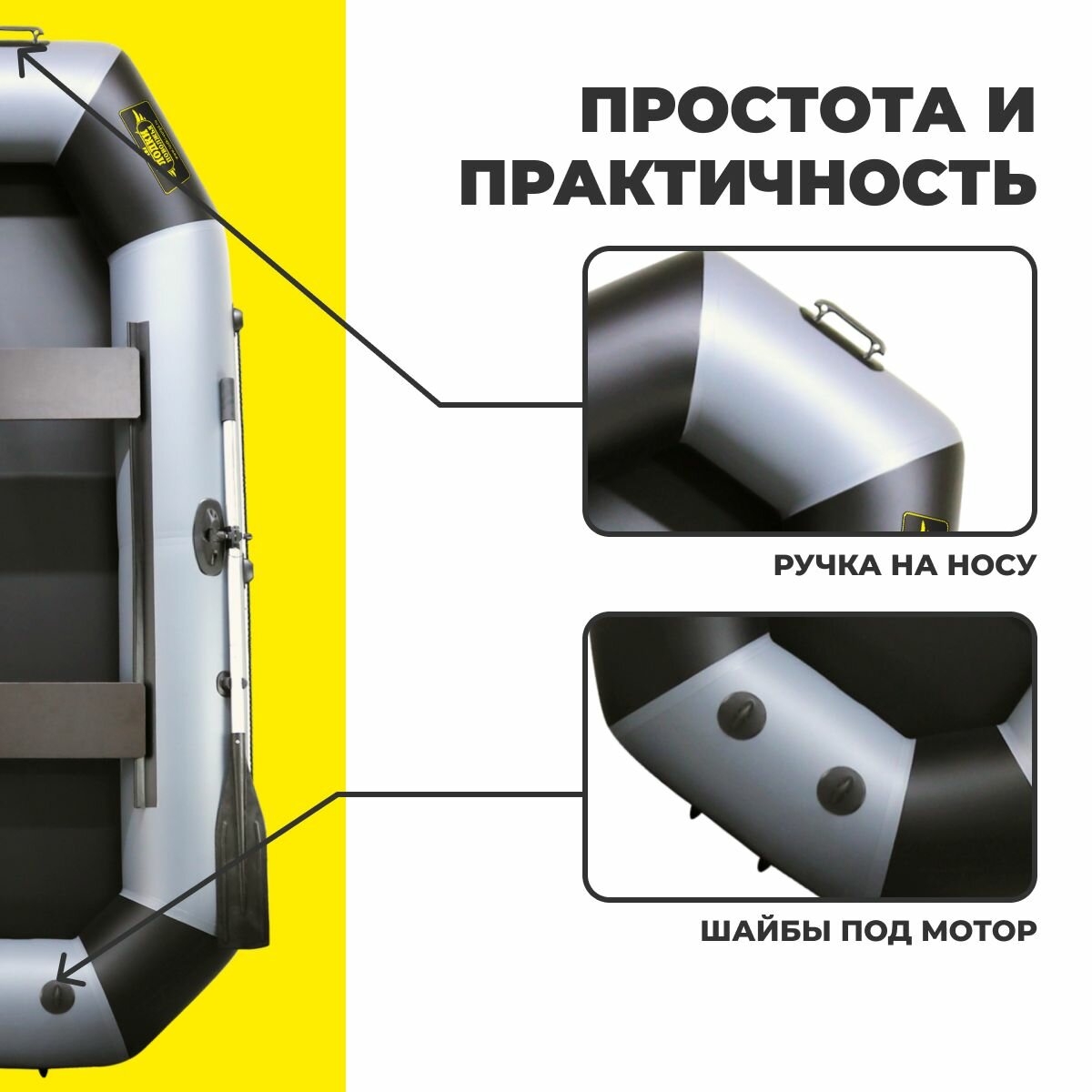 Лодка надувная для рыбалки ПВХ Лодки Поволжья S-280 + сплошной ПОЛ слань в комплекте, двухместная, крепления для транца под мотор, серо-черная информация: