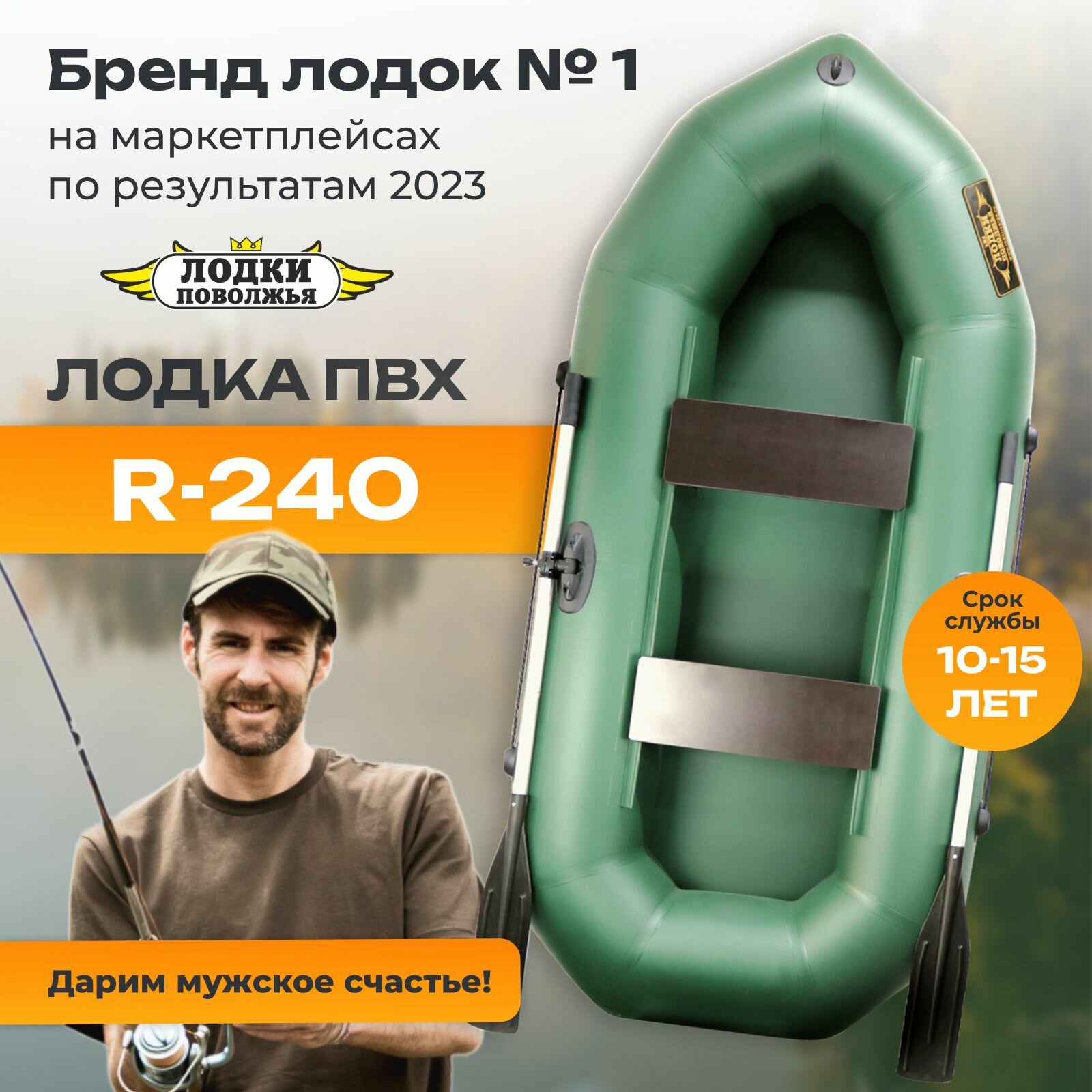 Отзывы на Лодка ПВХ надувная для рыбалки Лодки Поволжья R-240 гребная двухместная зеленая