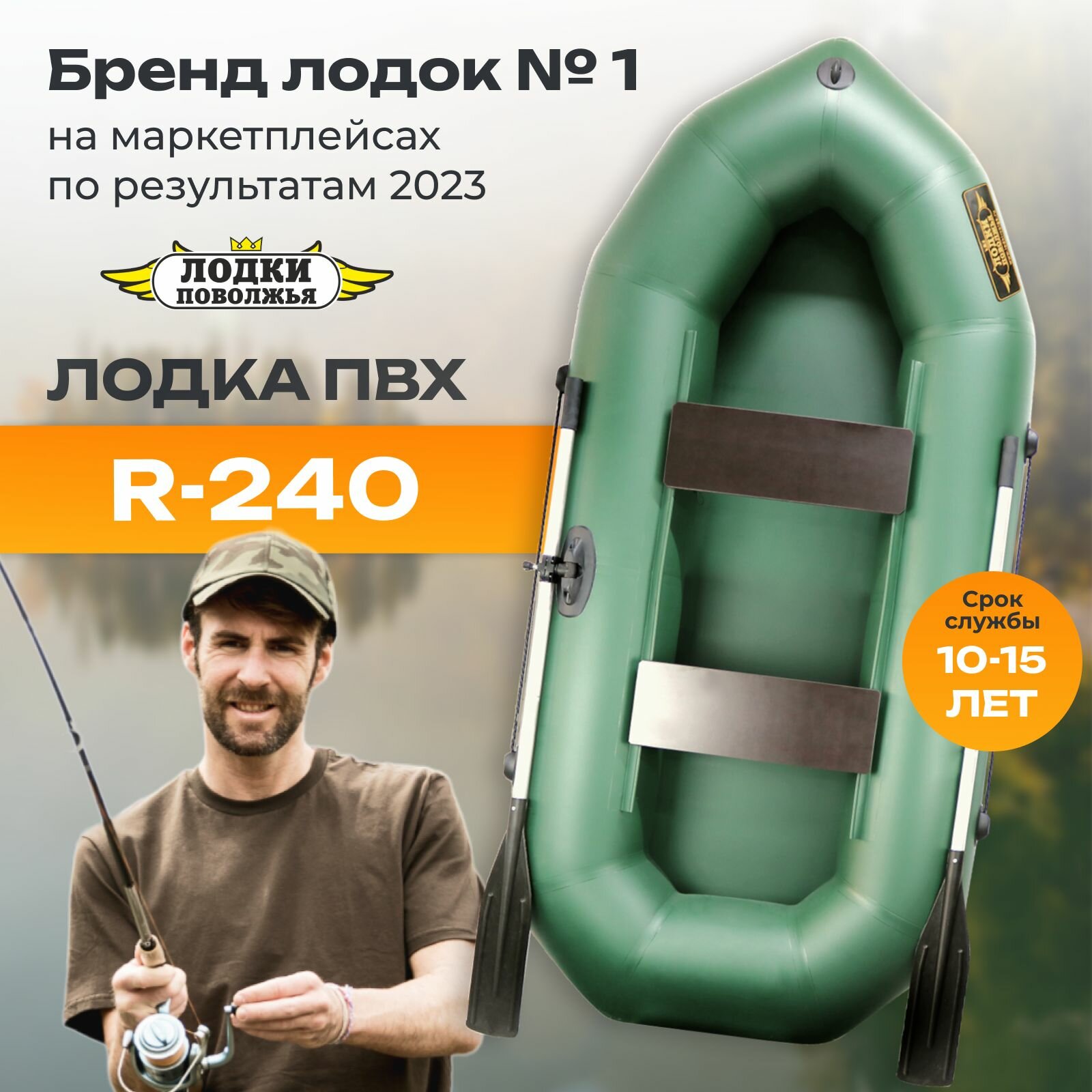 10 цен на Лодка ПВХ надувная для рыбалки Лодки Поволжья R-240 гребная двухместная зеленая