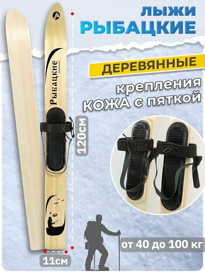Лыжи охотничьи Маяк рыбацкие 120х11 см деревянные с креплением кожа с пяточным ремнем информация: