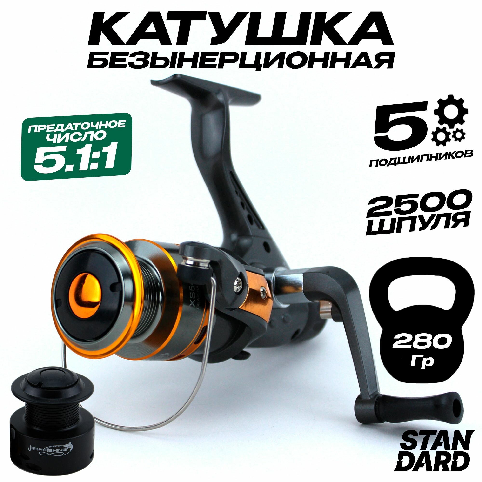 Безынерционная катушка для спиннинга COBLLA XS540B, 2500 размер (5 подшипников) с запасной шпулей информация:
