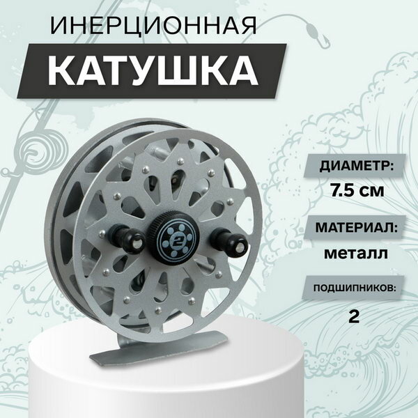 Катушка инерционная, металл, диаметр 10 см, два подшипника, цвет серый, TL100A информация: