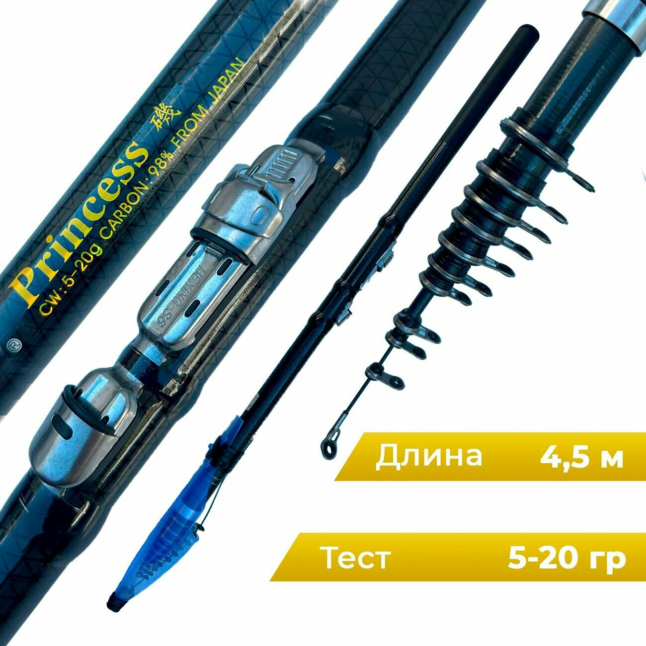 Удилище телескопическое с кольцами Mikado Princess Carbon 4.5 м тест 5-20гр информация: