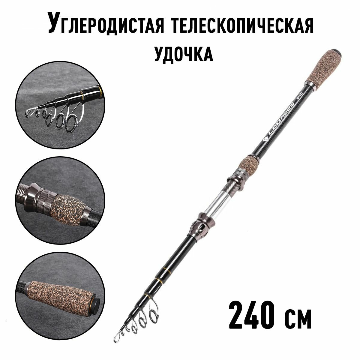 Углеродистая телескопическая удочка 240см 2.4м тест 10-28 гр информация: