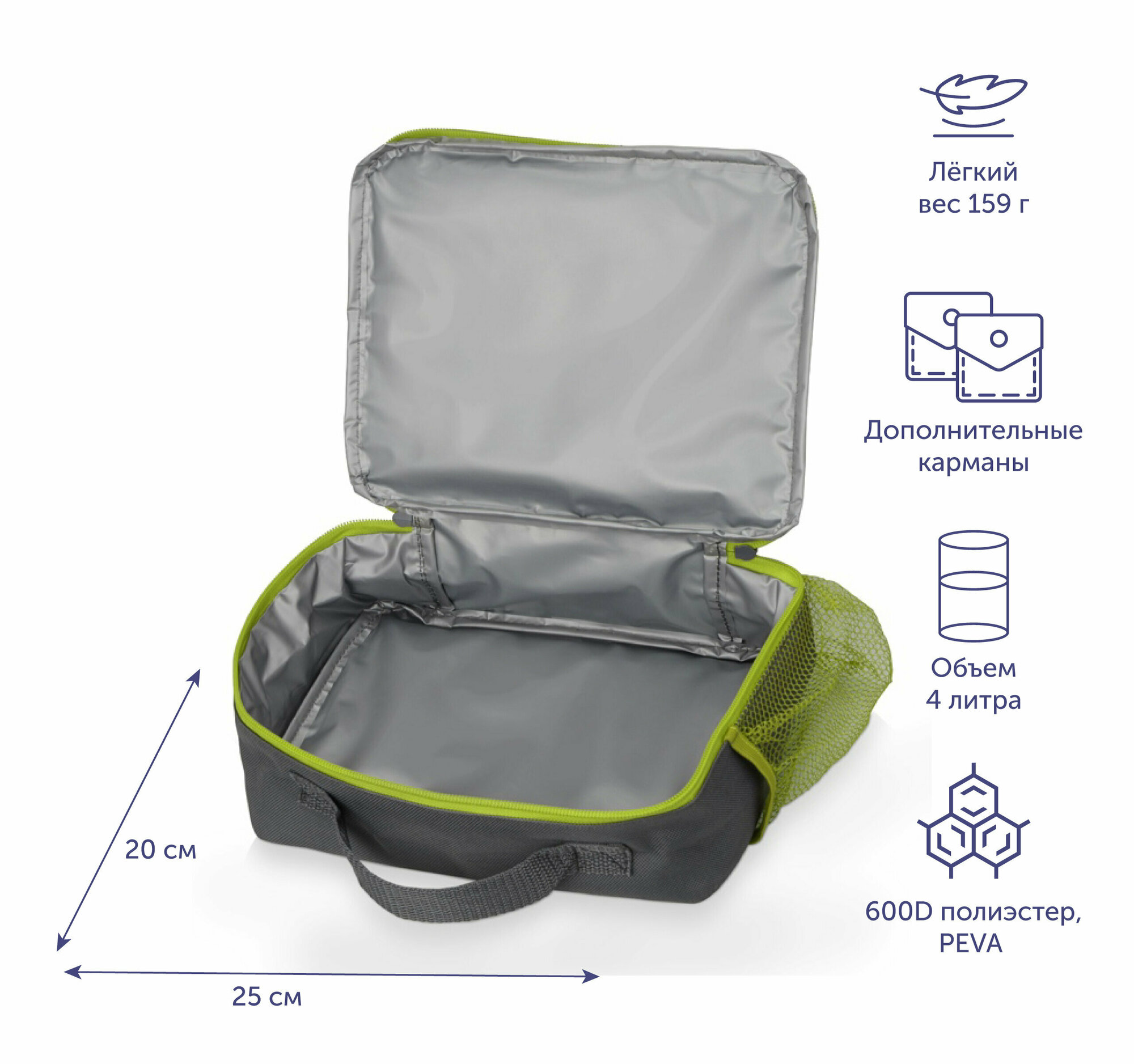 Отзывы на Изотермическая сумка-холодильник "Breeze" на 4 л для ланч-бокса, цвет серый/зеленое яблоко