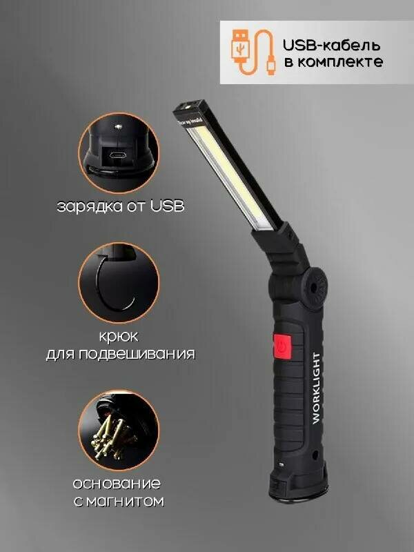 Фонарик ручной аккумуляторный светодиодный/фонарь переносной для ремонта автомобиля/ручной прожектор с магнитом