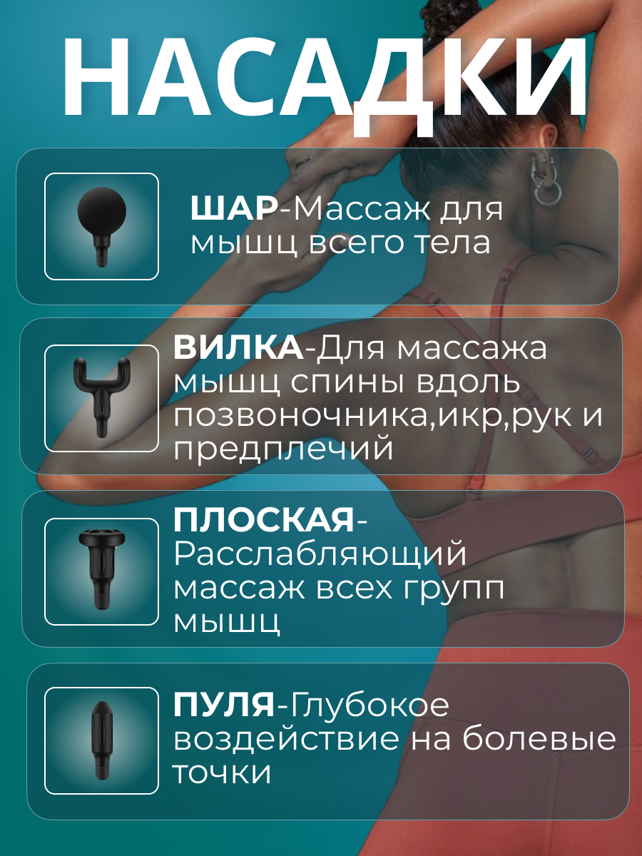 Перкуссионный массажер пистолет для тела, спины, ног и шеи информация: