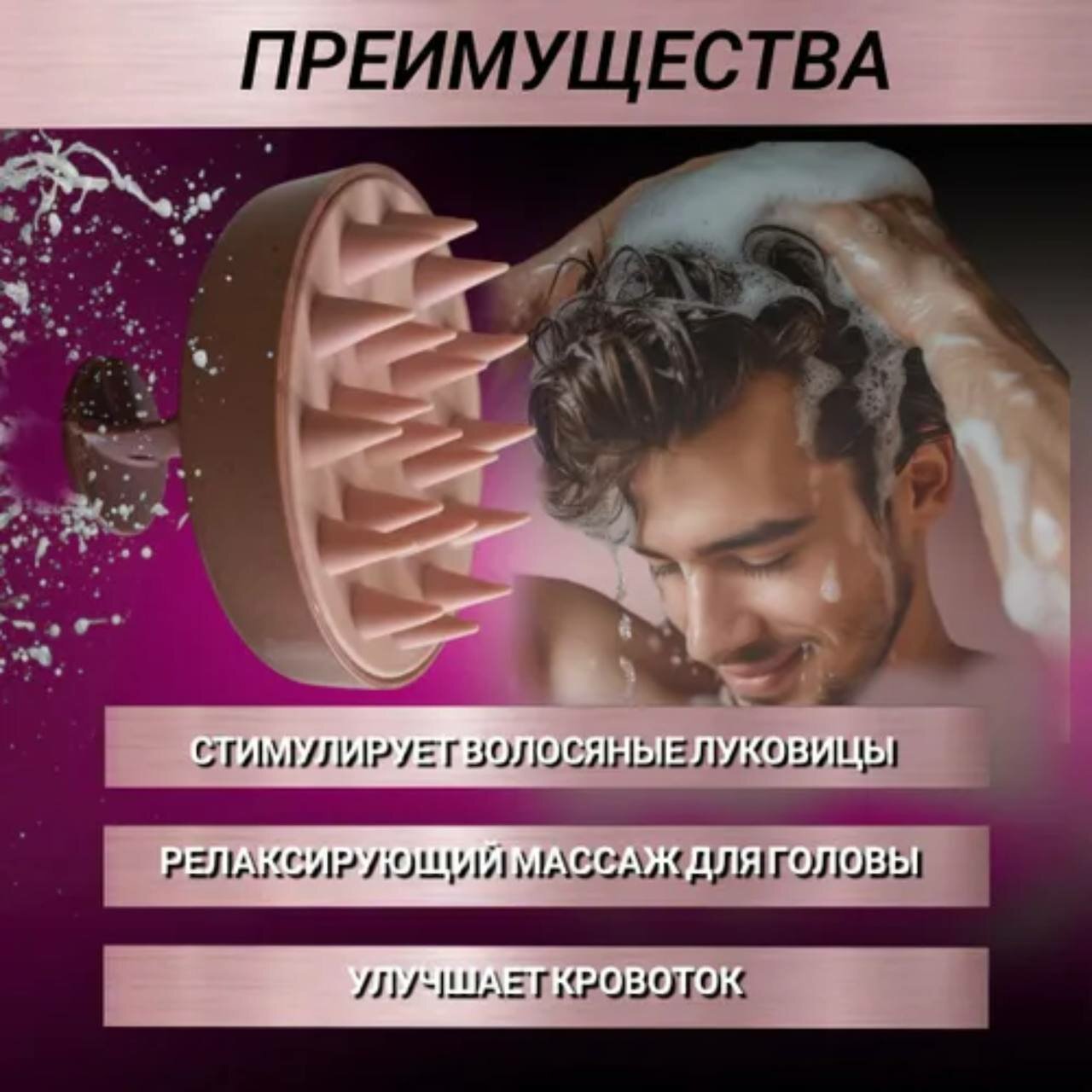Отзывы на Массажная щетка для мытья волос и кожи головы силиконовая песочная