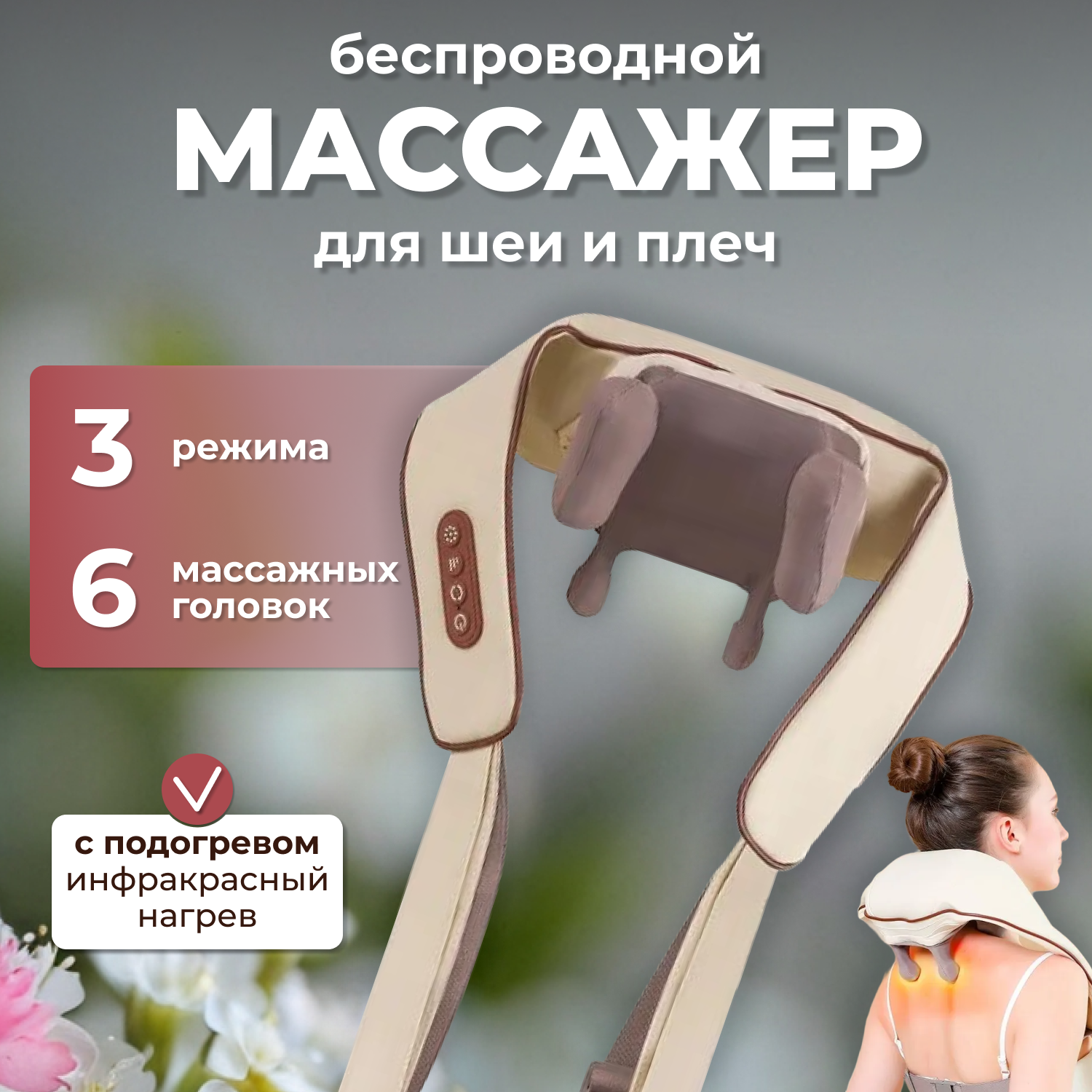 Премиум Массажер для шеи и плеч, тела, спины, беспроводной, с ИК прогревом, многофункциональный.