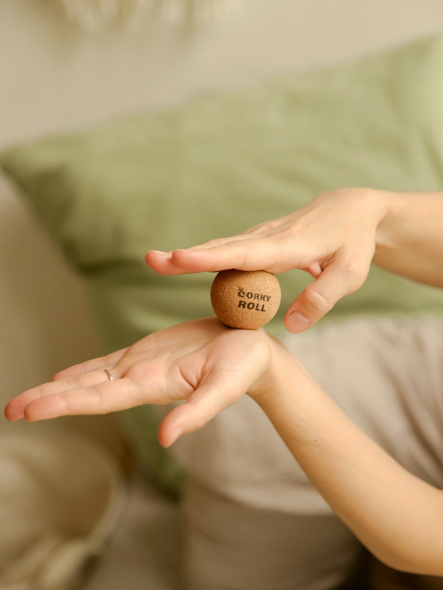 Массажный мячик CORKY ROLL из пробки 3 см для массажа лица, шеи, декольте, стоп, ладоней. В льняном мешочке