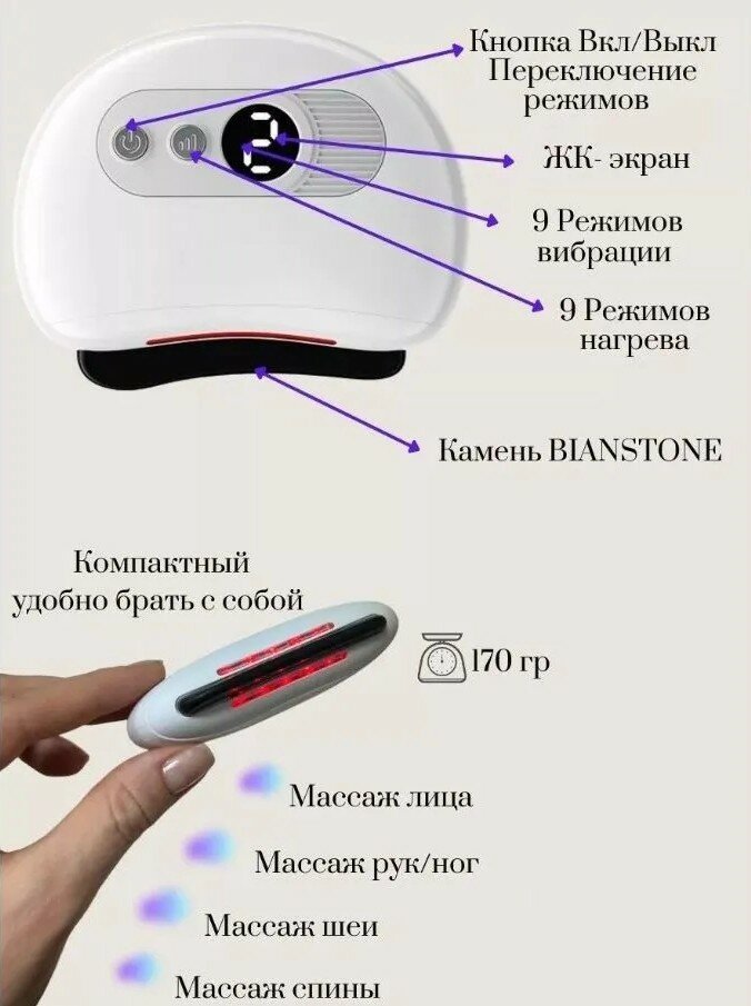 Отзывы на Скребковый массажер Гуаша электрический для лица и тела с подогревом и вибрацией белый
