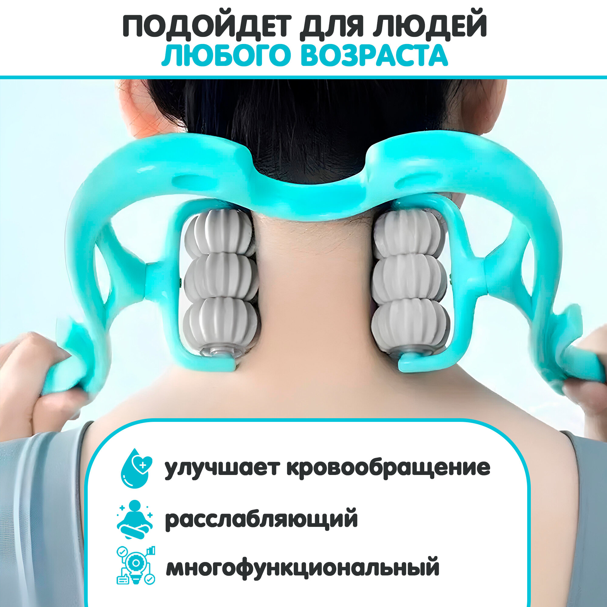 Массажер ручной роликовый для расслабления мышц шеи и плеч информация: