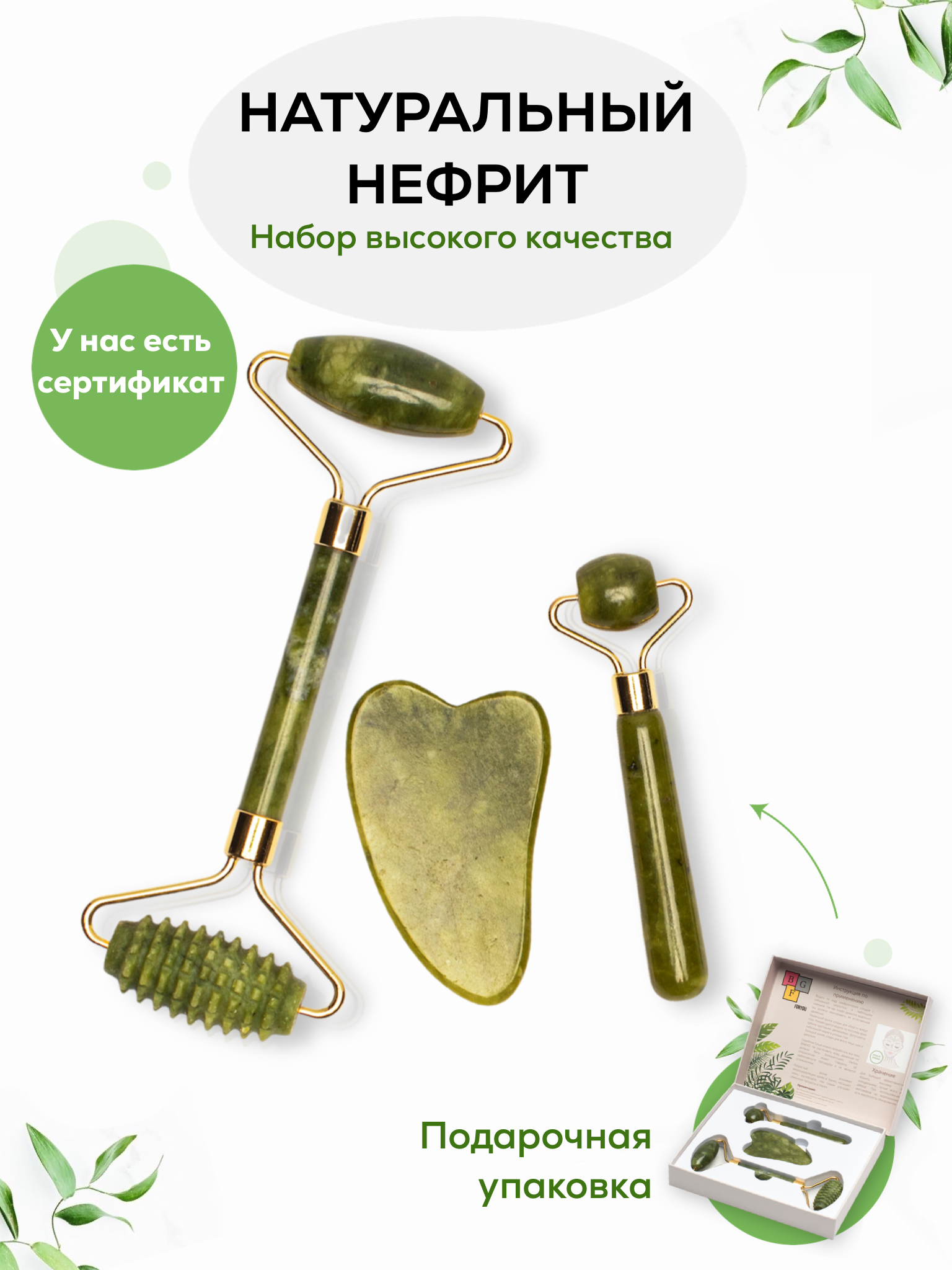10 цен на Ролик массажный для лица, набор ребристый ролик и скребок гуаша из натурального нефрита