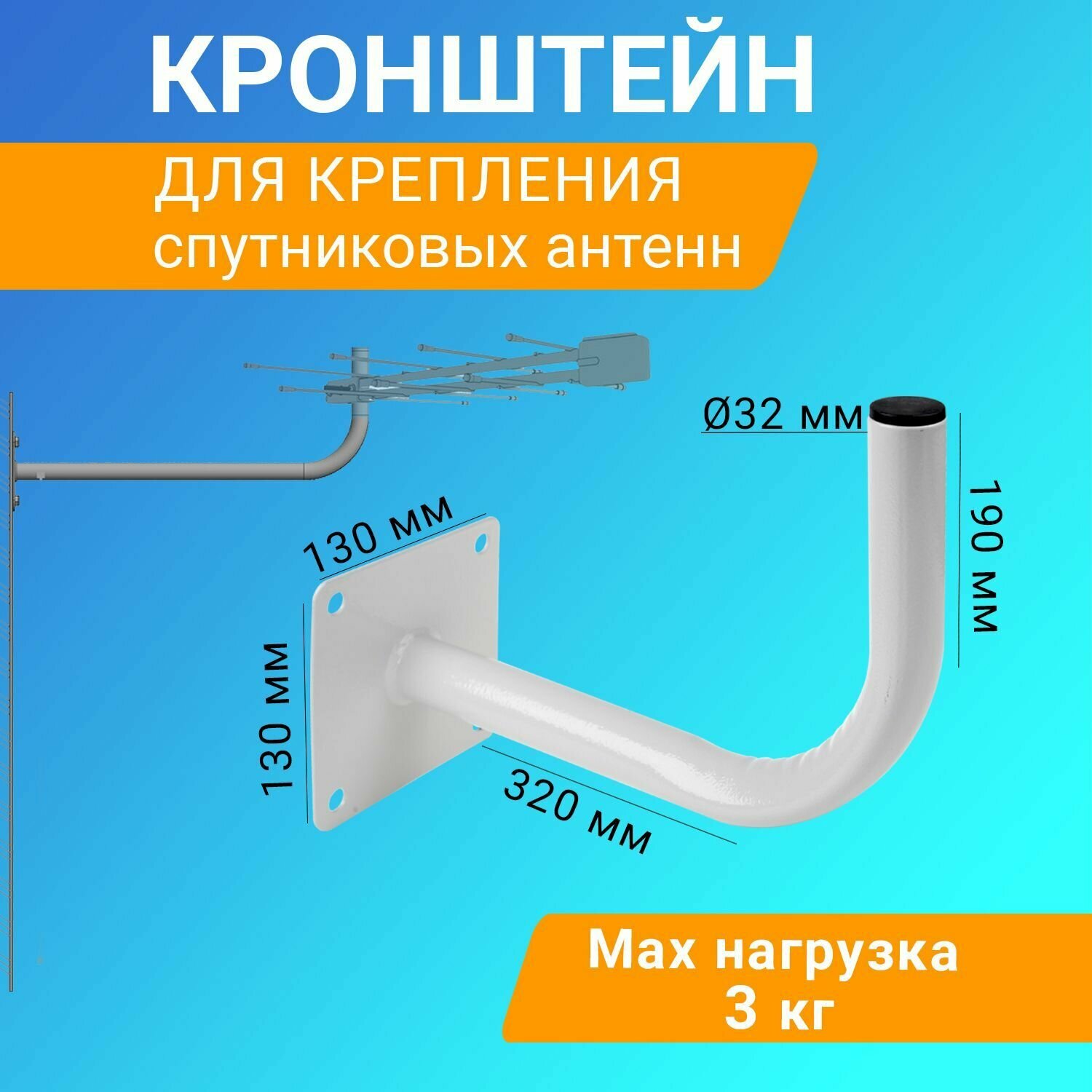 Отзывы на Кронштейн для антенны спутниковой Г-образный, вылет от стены 32 см