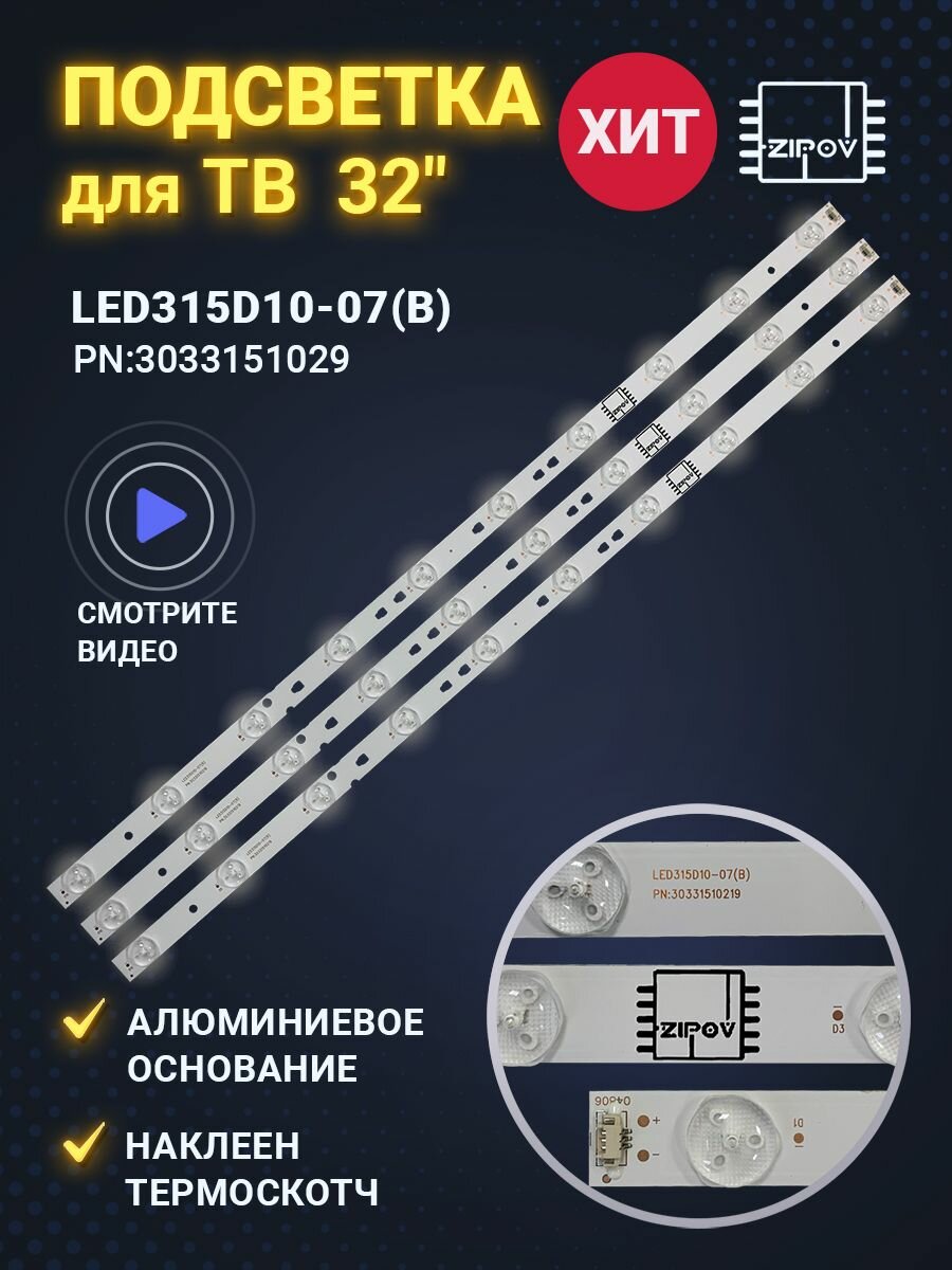 10 цен на Подсветка для ТВ 32" LED315D10-07(B) модели Telefunken TF-LED32S38T2 TF-LED32S41T2 Mystery MTV-3223LT2 MTV-3226LT2 Haier LE32B310N LE32B8000T