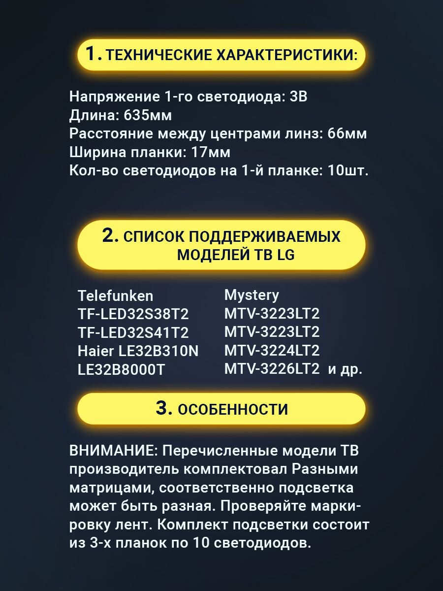 Отзывы на Подсветка для ТВ 32" LED315D10-07(B) модели Telefunken TF-LED32S38T2 TF-LED32S41T2 Mystery MTV-3223LT2 MTV-3226LT2 Haier LE32B310N LE32B8000T