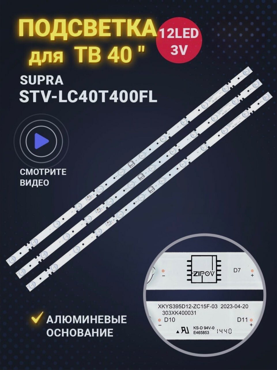10 цен на Подсветка для ТВ Supra STV-LC40T400FL XKYS395D12-ZC15F-03 303XK400031 (комплект 3 шт)