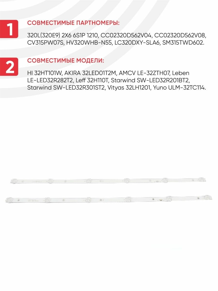 10 цен на LED подсветка (светодиодная планка) для телевизора CC02320D562V08 2X6 16/3/18 (комплект 2шт)