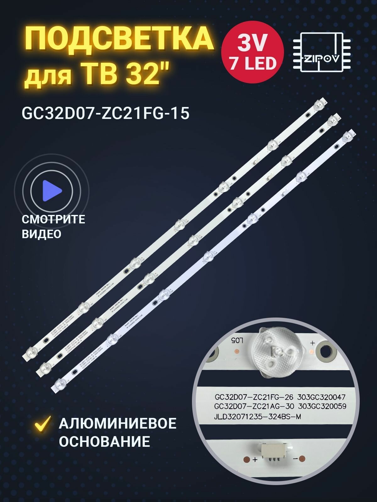 Подсветка GC32D07-ZC21FG-15 303GC320038 для ТВ Dexp F32D7000B / Daewoo L32S65FVBE /Orion OLT-32802 / Shivaki STV-32LED15 / Nomi 32h10 (комплект 3 шт) информация: