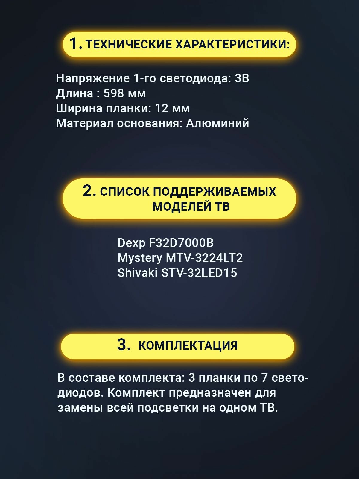 | Тип | подсветка для телевизора |