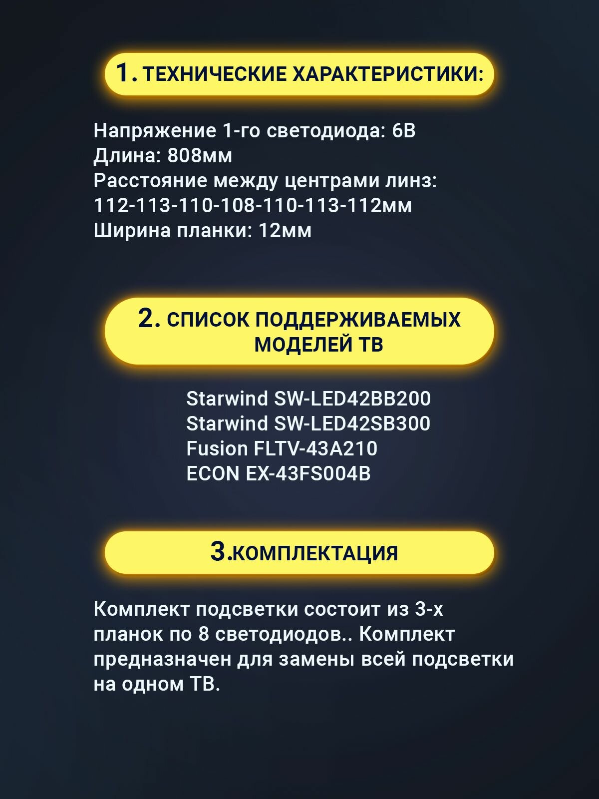 Подсветка для ТВ Starwind SW-LED42BB200 SW-LED42SB300 Fusion FLTV-43A210 (комплект 3шт.) информация: