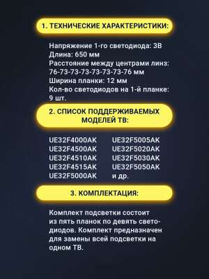 Отзывы на Подсветка для ТВ Samsung UE32F5000AK / UE32F5300AK / UE32F5020AK / UE32F4500AK / UE32F4510AK / UE32F4515AK алюминиевая подложка (комплект 5шт)