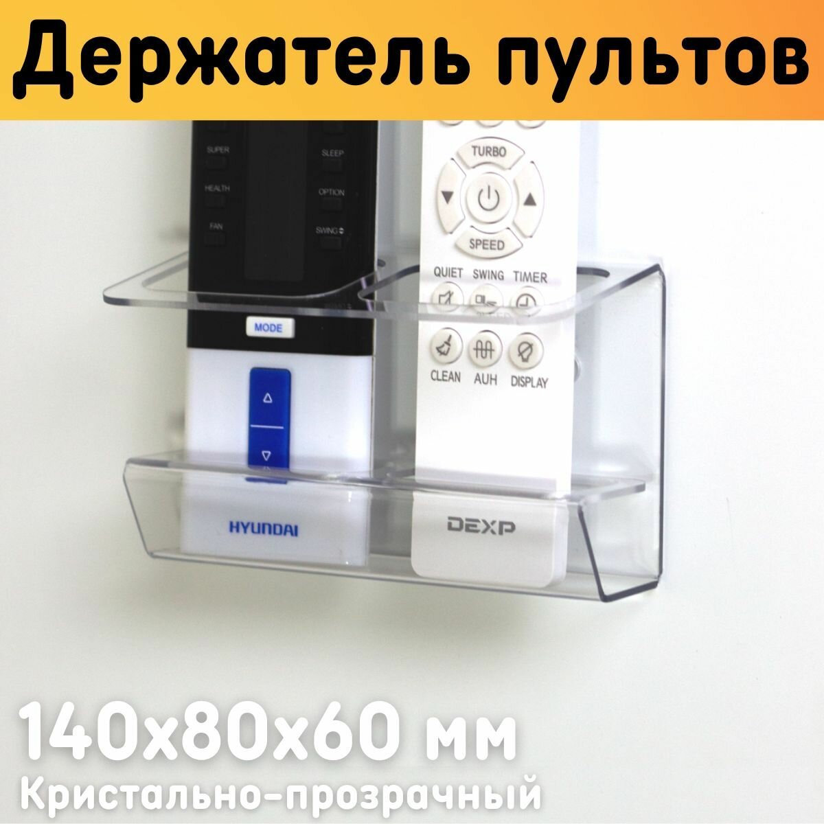 Отзывы на Держатель для пультов на стену с 2-мя ячейками, прозрачный, размер 140х80х60 мм / Подставка для 2-ух пультов