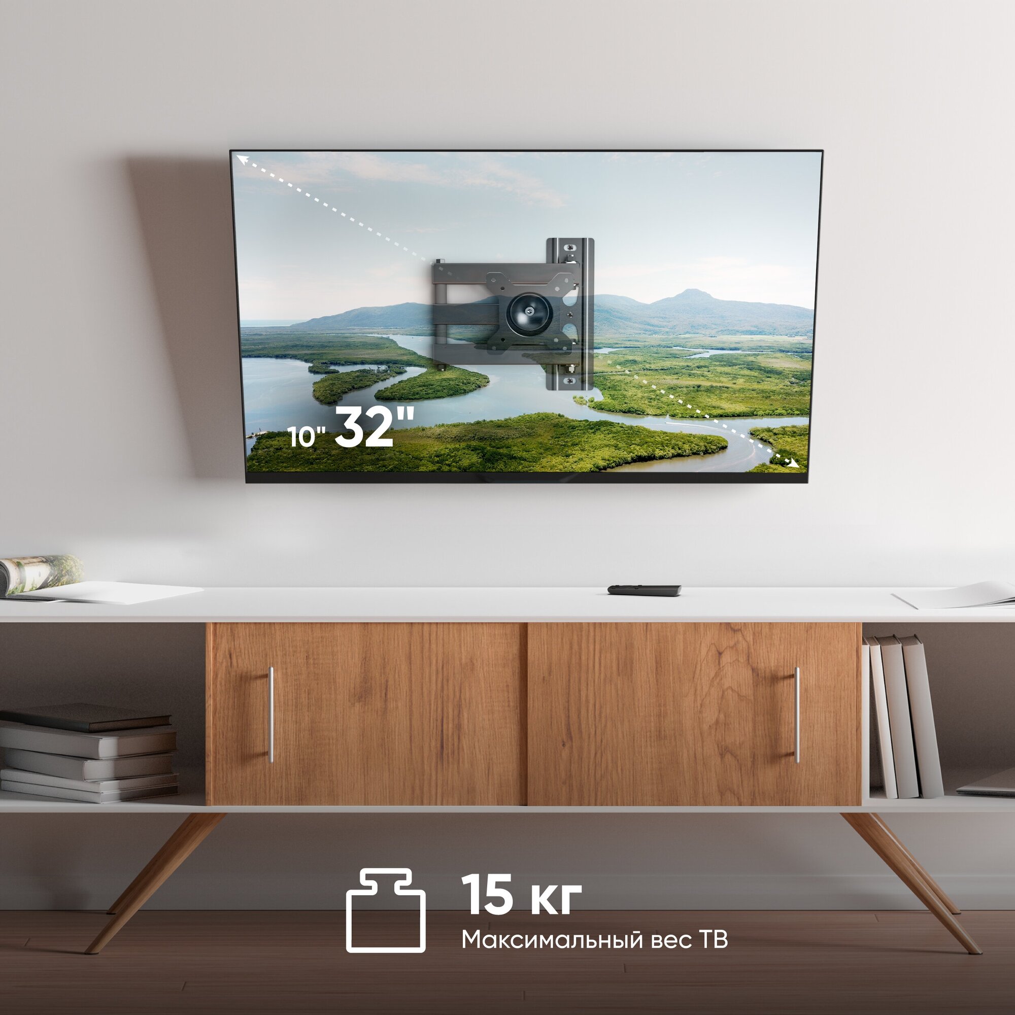 Кронштейн на стену STE-311 для телевизора 10"- 32", наклонно-поворотный с вращением, до 15 кг, черный информация: