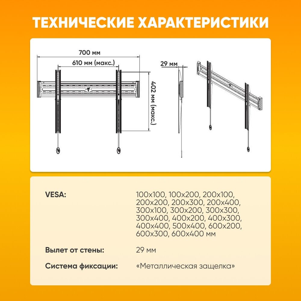 Кронштейн фиксированный для телевизоров 42-75 дюйма до 65 кг LCD крепление ТВ на стену информация: