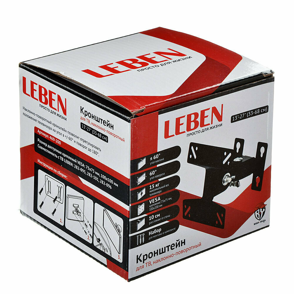 Кронштейн для ТВ 13"-27" наклонно-поворотный LEBEN, до 15 кг, металл информация: