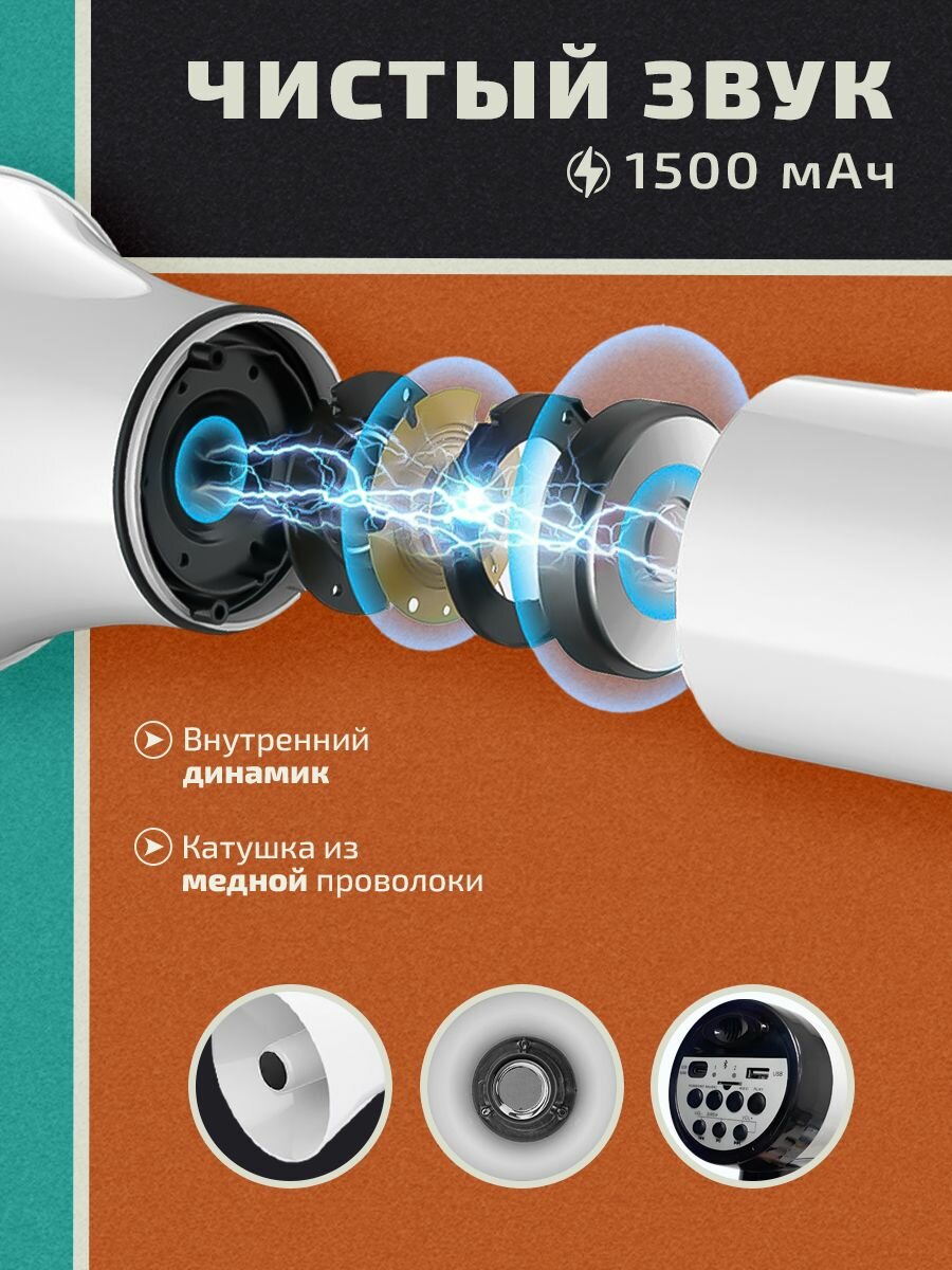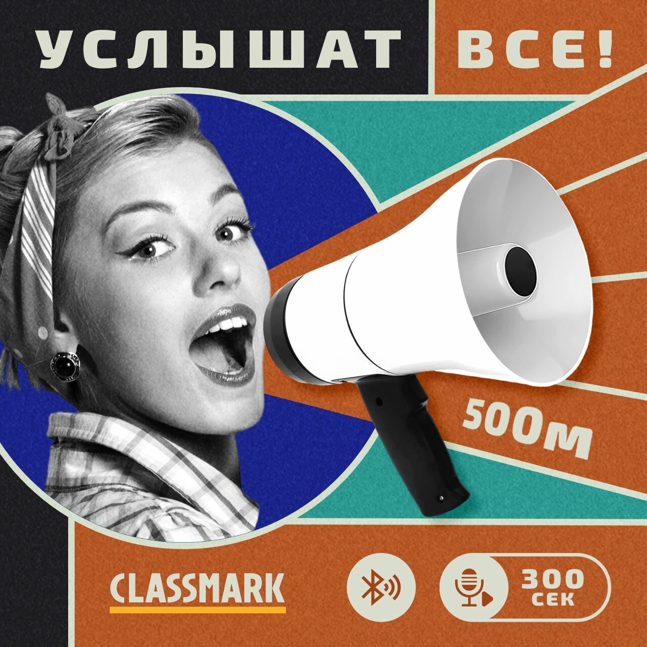Громкоговоритель рупор Classmark Мегафон с записью голоса экскурсионный, усилитель звука и голоса с блютуз / bluetooth для гида и массовых мероприятий до 600 метров, с функцией записи информация: