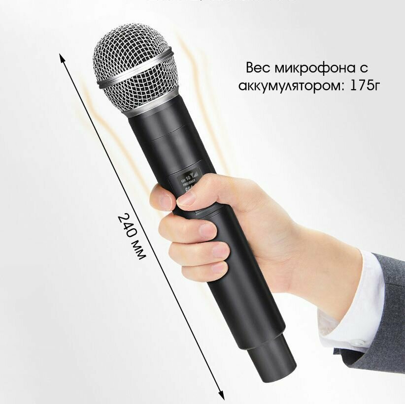 10 цен на Беспроводные микрофоны для живого вокала, караоке система, 2 шт + приемник