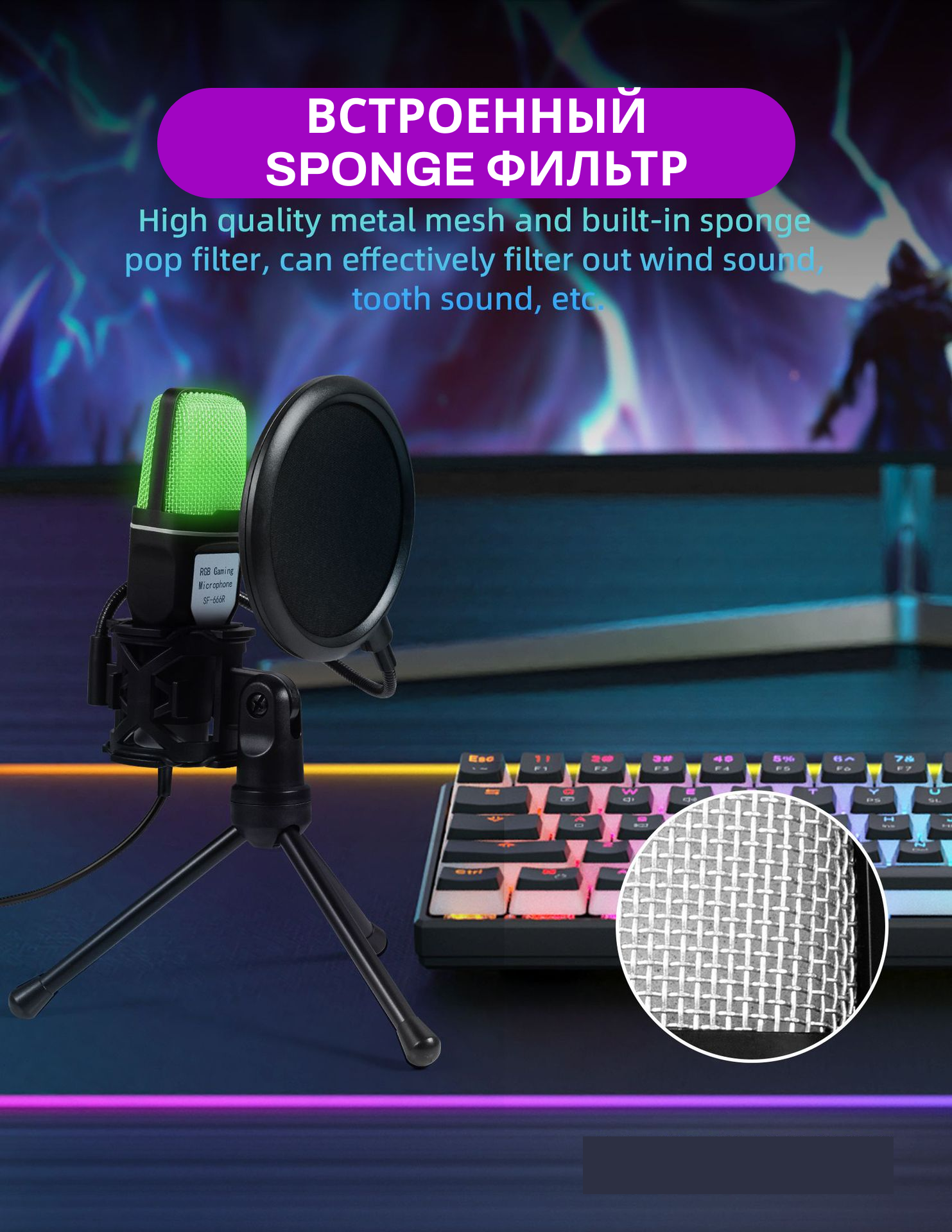 10 цен на Игровой микрофон c RGB подсветкой для пк, для игр, стрима Twitch, записи и подкастов