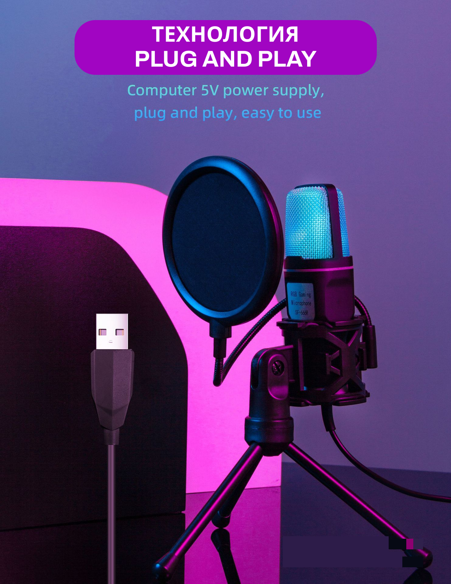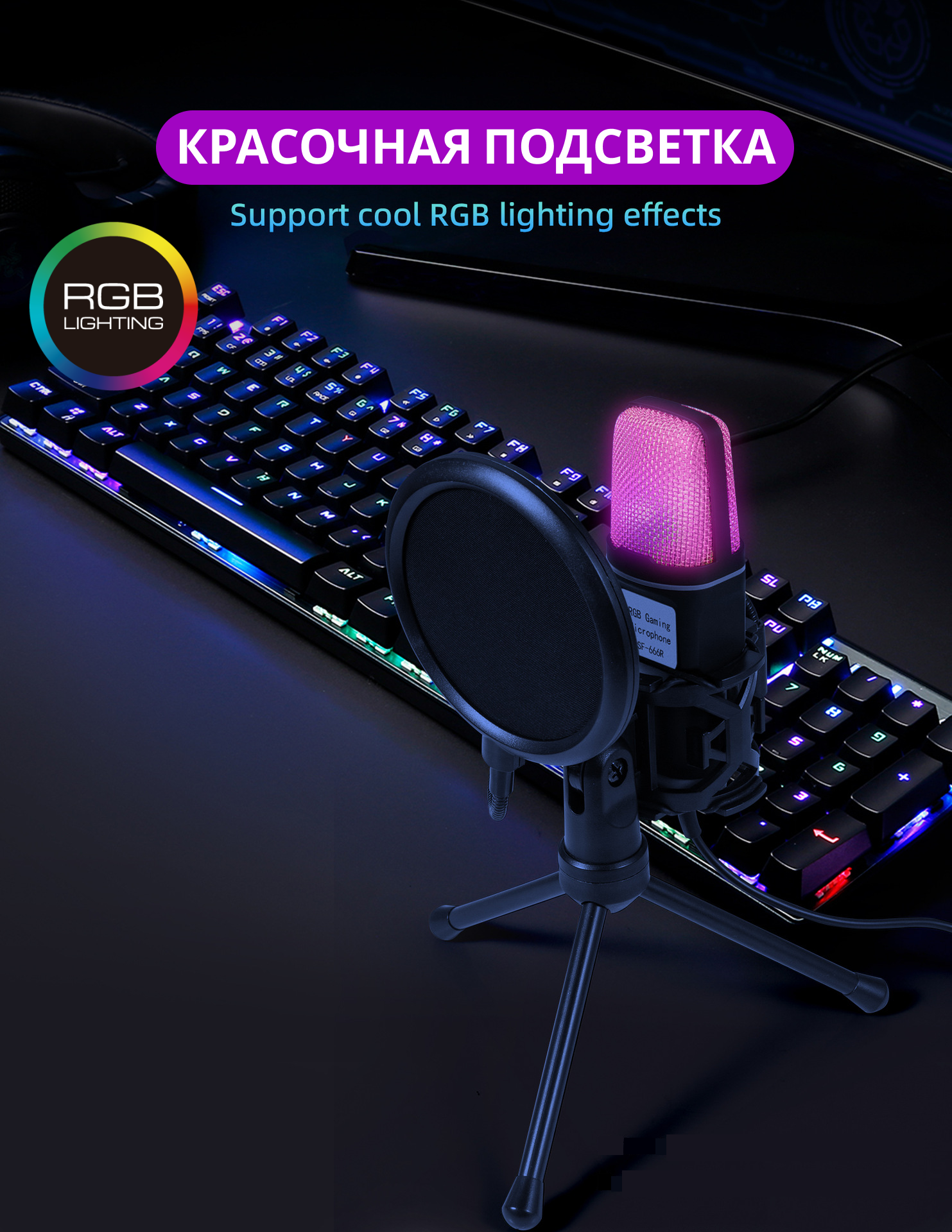 Игровой микрофон c RGB подсветкой для пк, для игр, стрима Twitch, записи и подкастов информация: