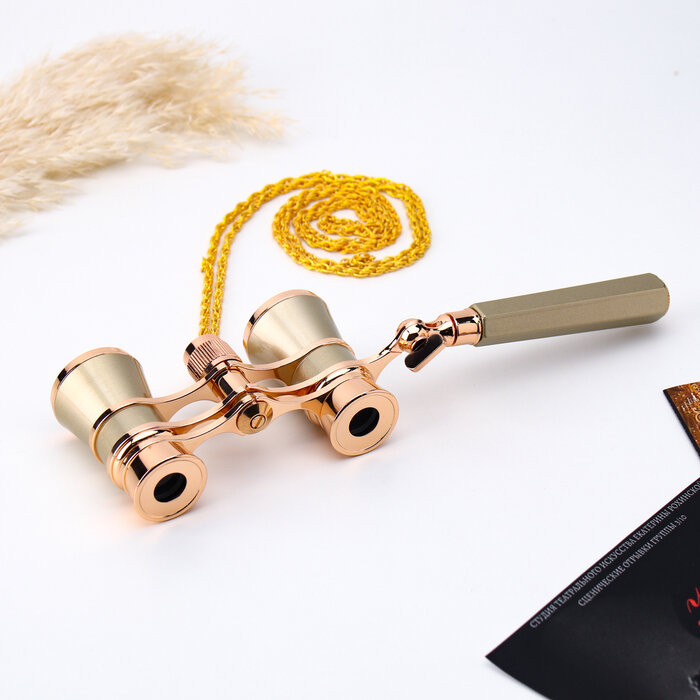 Бинокль театральный, телескопическая ручка, цепочка, золотистый информация: