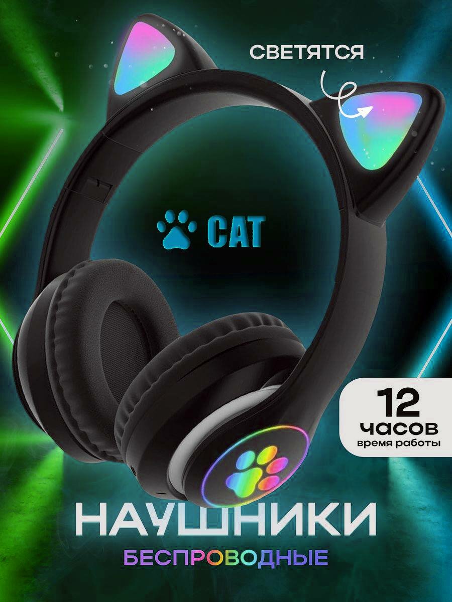 Наушники с ушками кошки беспроводные STN-28 JBH стерео / Наушники Bluetooth / Светящиеся детские беспроводные наушники с ушками / Подарок информация: