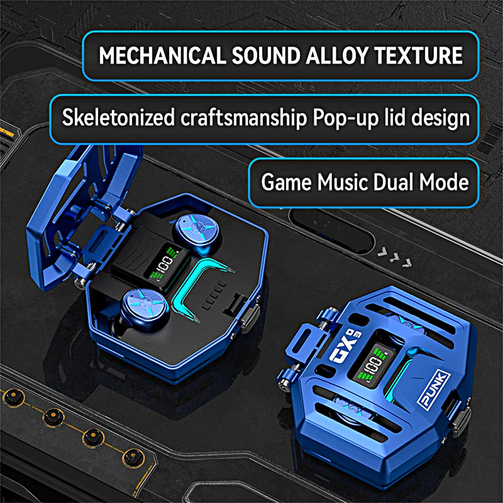 Беспроводные TWS наушники DX-03 PUNK, Игровые наушники с микрофоном, LED дисплей, Bluetooth 5.3, Сенсорное управление, Зарядный кейс, Синий/Серый информация: