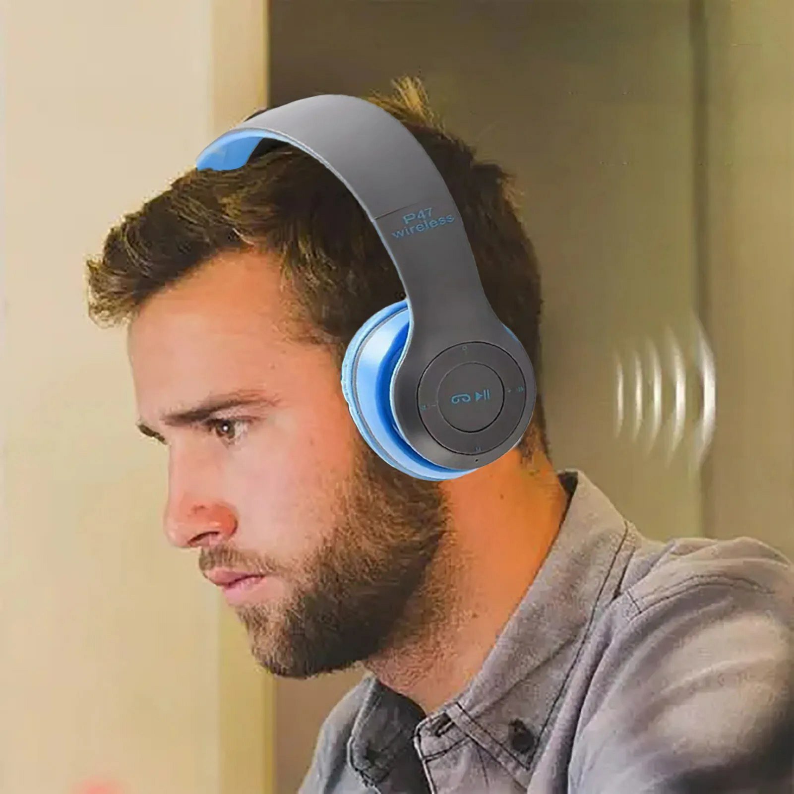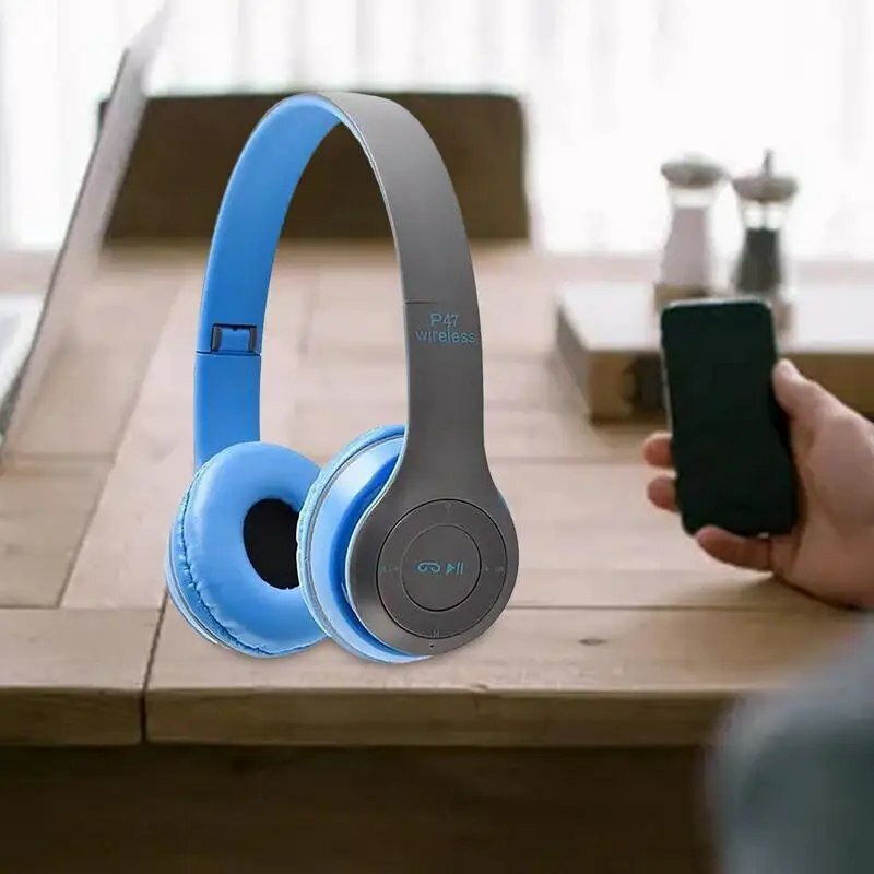 10 цен на Беспроводные наушники накладные большие с шумоподавлением микрофоном синие Bluetooth